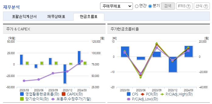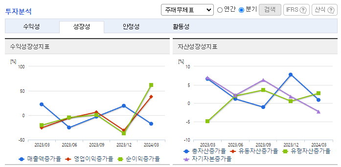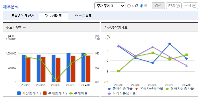 -2024년 3월 전년동기 대비 연결기준 매출액은 28.2% 감소, 영업이익은 4.5% 감소, 당기순이익은 10.8% 증가. 1분기 연결 지배 순이익은 5,858억 원을 기록하며 전년 동기 대비 11% 증가함. 증권의 이익 감소를 화재의 실적 호조로 상쇄. 동사 최고 경영진은 실적 설명회에서 25년 말까지 50%의 주주 환원 및 적정 자본 비용 등을 고려한 자사주 매입/소각 위주 환원 정책이 지속될 것임을 언급함.