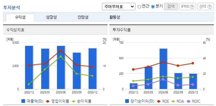 -2023년 9월 전년동기 대비 연결기준 매출액은 23.6% 증가, 영업이익은 108.8% 증가, 당기순이익은 67.4% 증가. 균일한 제품의 양산 능력, 원가 절감 경쟁력 등을 바탕으로 한 기술 진입장벽이 구축되어 있으며, 초기 대규모 설비투자가 수반되는 장치산업의 특징상의 자본 진입장벽이 구축되어 있음. 해외 완성차 업체向 매출을 증대시키기 위하여 글로벌 영업을 지속적으로 추진할 예정임.
