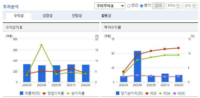 -2023년 12월 전년동기 대비 별도기준 매출액은 7.4% 증가, 영업이익은 124% 증가, 당기순이익은 291.6% 증가. 동사 주요 제품인 화장지 원지, 두루마리 화장지, 미용티슈 화장지의 가격이 전년동기 대비 상승하였고 이에 따라 제품, 상품, 반제품의 매출도 증가하였음. 신규 가공설비 투자, E-Commerce 시장으로의 적극적 대응, 신규 브랜드 및 신제품 출시 노력 등을 지속할 예정임.