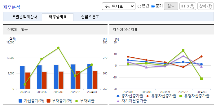 -2024년 3월 전년동기 대비 연결기준 매출액은 3.5% 감소, 영업이익은 6.3% 감소, 당기순이익은 33.6% 증가. 아시아 및 유럽시장의 호조세 이어지고 있으나 내수 판매 부진으로 전년동기 실적을 하회하는 외형 기록함. 외형 축소의 영향으로 영업수익성 또한 하락한 모습. 해외시장으로의 매출 지속되고, 향후 국내 경제여건 회복 시 실적 회복 가능할 것으로 기대함.
