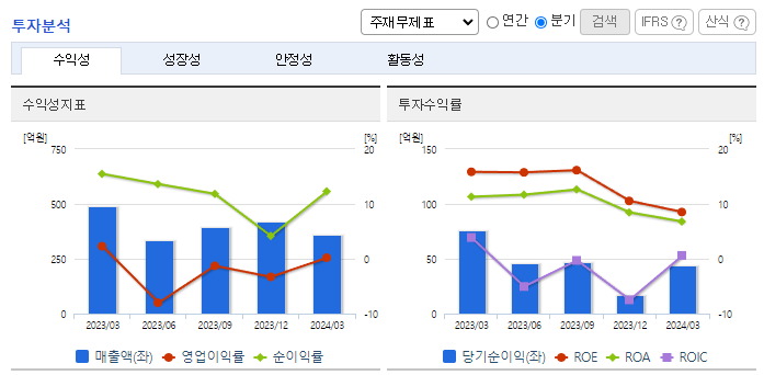 -2024년 3월 전년동기 대비 별도기준 매출액은 26.7% 감소, 영업이익은 93.8% 감소, 당기순이익은 41.8% 감소. 동사의 임대사업 매출은 전년동기 대비 소폭 증가하였지만 전체 매출에서 큰 비중을 차지하는 철강사업분야가 철강 산업 시장의 악화의 영향으로 전체적인 매출액은 감소함. 고객의 니즈를 충족시키기 위한 커뮤니케이션 확충 및 품목의 다양화와 대량화 등의 전략으로 실적 회복에 노력.