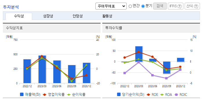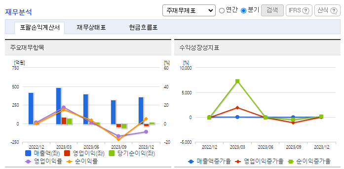 -2023년 9월 전년동기 대비 연결기준 매출액은 3.6% 증가, 영업이익은 74.3% 감소, 당기순이익은 76.6% 감소. 주요 고객이었던 바이오벤처의 신약 개발의 단계가 올라감에 따라, 동사의 임상 수주와 범위도 증가함. 매출원가, 판매관리비가 전년 동기 대비 크게 증가하여 영업이이 감소함. 외환차손이 전년 동기 대비 1398% 증가하여 당기순이익이 크게 감소함.