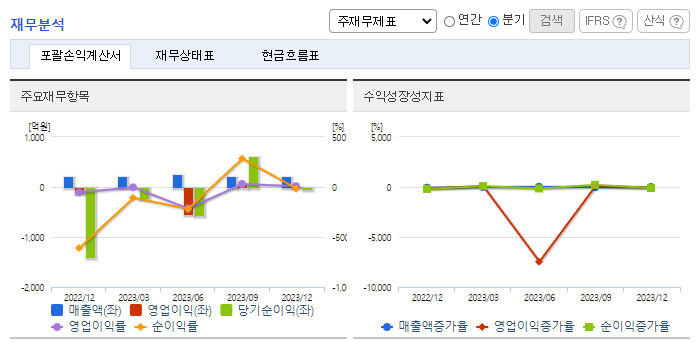 -2023년 9월 전년동기 대비 연결기준 매출액은 85% 감소, 영업이익 적자전환, 당기순이익 적자전환. 동물용 주요 품목으로는 신속면역화학진단 브랜드 BIONOTE Rapid, 효소면역반응진단 브랜드 BIONOTE ELISA, 면역화학 형광진단 제품인 Vcheck F가 있음. 주력 제품인 동물용 의료기기 외, 인체 체외진단 시약 등에 사용하는 반제품, 원료(항원)등 바이오콘텐츠사업을 본격적으로 확충할 계획.