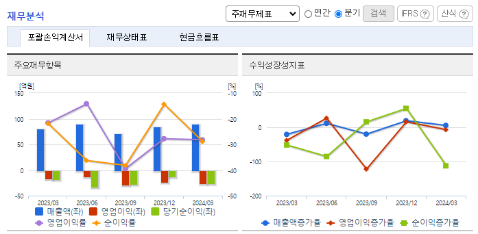 -2024년 3월 전년동기 대비 연결기준 매출액은 12.1% 증가, 영업손실은 46.5% 증가, 당기순손실은 72.2% 증가. 매출은 다소 증가되었으나 전반적으로 뚜렷한 성장세를 시현하지 못하고 있으며, 원가율 급등으로 수익성 악화되며 적자 폭 확대된 상황. 2015년부터 '화학물질 등록 및 평가 등에 관한 법률'에 따라 화학물질 안전관리 규제가 시행됨에 따라 비임상 CRO시장이 점차 확대되고 있는 점 긍정적으로 평가.