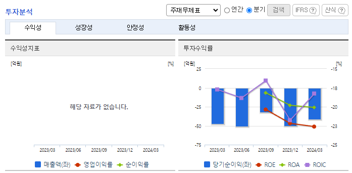 -2024년 3월 전년동기 대비 연결기준, 영업손실은 10.4% 감소, 당기순손실은 13% 감소. 다양한 혈액암 관련 연구자임상 결과를 바탕으로 개발된 VT-EBV-N NK/T세포 림프종 치료제는 현재 임상 2상 진행 중에 있으며 판매 중인 제품이 없어 매출이 따로 인식되지는 않음. VITier는 맞춤형 면역세포치료제로 NK/T세포 림프종에서는 글로벌 최초의 면역세포치료제로서 파트너사인 (주)보령과 매출 발생을 기대하고 있음.