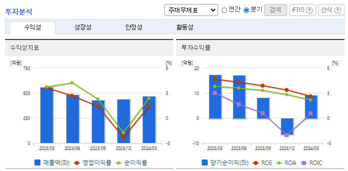 -2024년 3월 전년동기 대비 별도기준 매출액은 15.7% 감소, 영업이익은 66.8% 감소, 당기순이익은 46.5% 감소. 철강은 대표적인 장치산업으로서 내수경기 회복 및 수출산업의 성장, 중국경제 성장 등에 따른 지속적인 수요가 예상되며, 장기적인 관점에서는 비교적 안정적인 성장이 전망됨. 원재료 등의 가격변동 추이는 국내외 철강가격 인하요인에 의한 포스코의 출고가격 인하에 따라 전년대비 인상되었음.