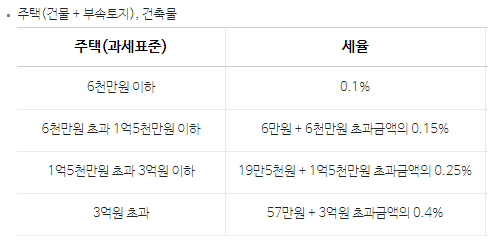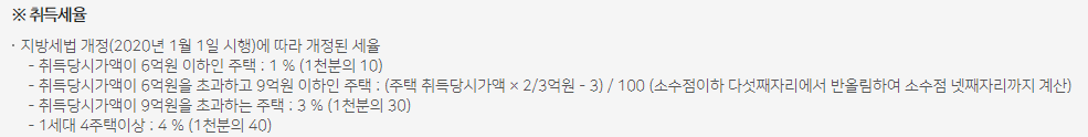 - 조정대상지역 1세대 3주택이상, 조정대상지역 외 지역 1세대 4주택 이상 : 1.0%