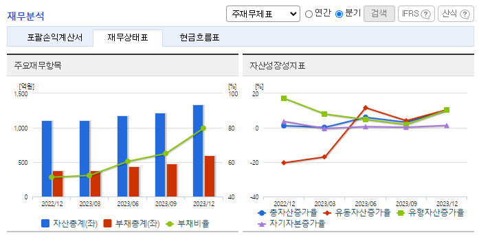 -2023년 12월 전년동기 대비 연결기준 매출액은 20.4% 감소, 영업이익 적자전환, 당기순이익은 87.6% 감소. 반도체 시장 침체기의 영향으로 국내 및 중국시장 매출이 크게 감소하여 적자전환함. 2023년도 12월 말 연결기준 총매출액 중 반도체 제조회사 448억 원(69%), 반도체 장비회사 205억 원(31%)을 판매함. 글로벌 반도체 제조회사인 삼성전자와 SK하이닉스에 직접 납품하는 비중이 증가하고 있음.