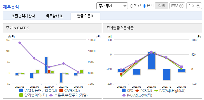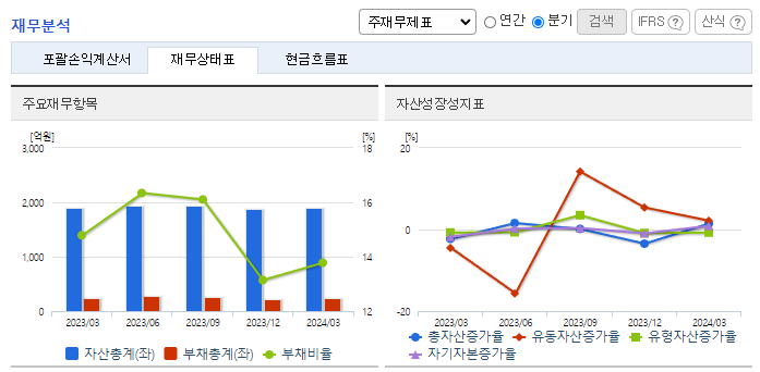 -2024년 3월 전년동기 대비 연결기준 매출액은 33.3% 감소, 영업손실은 20.5% 감소, 당기순이익 흑자전환. 국내 및 중국 디스플레이업체들의 신규 투자가 축소되어 동사의 매출액이 전년보다 감소했음. Flexible Display 열처리장비 사업 부문이 78.72% 감소하면서 악영향을 줌. 매출원가가 75.80% 감소하면서, 매출액이 감소했음에도 영업이익은 오히려 증가함.