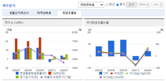 -2024년 3월 전년동기 대비 연결기준 매출액은 18.7% 감소, 영업이익은 58.5% 감소, 당기순이익은 53.5% 감소. 피팅밸브 사업의 매출이 주춤하며 매출이 소폭 감소함. 고객사인 국내 조선기업들의 신조선 수주가 계속되며 실적은 개선될 것으로 기대됨. 중동의 현지파트너와 합작법인 형태의 기공식을 진행 후 2024년 말부터 석유화학 제품을 생산할 예정임. 2025년부터 매출에 반영될 것으로 기대됨.