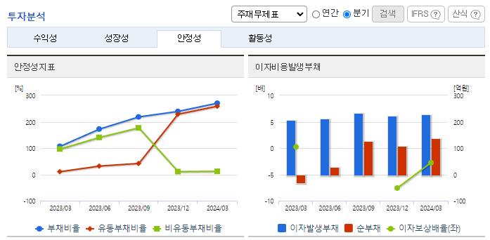 -2024년 3월 전년동기 대비 연결기준 매출액은 19.2% 증가, 영업이익 적자전환, 당기순손실은 348.8% 증가. 일반 IS SI 매출이 증가하였지만 용역비 및 지급수수료와 같은 판관비와 인건비가 대폭 증가하여 영업이익이 적자전환됨. 빅데이터/AI 시장 기반의 Graph 분석 영업 기회 지속적 확보 및 솔루션 기반의 영업기회 확보 (FDS, 예측분석시스템, 지식그래프 등)로 실적확대에 노력.