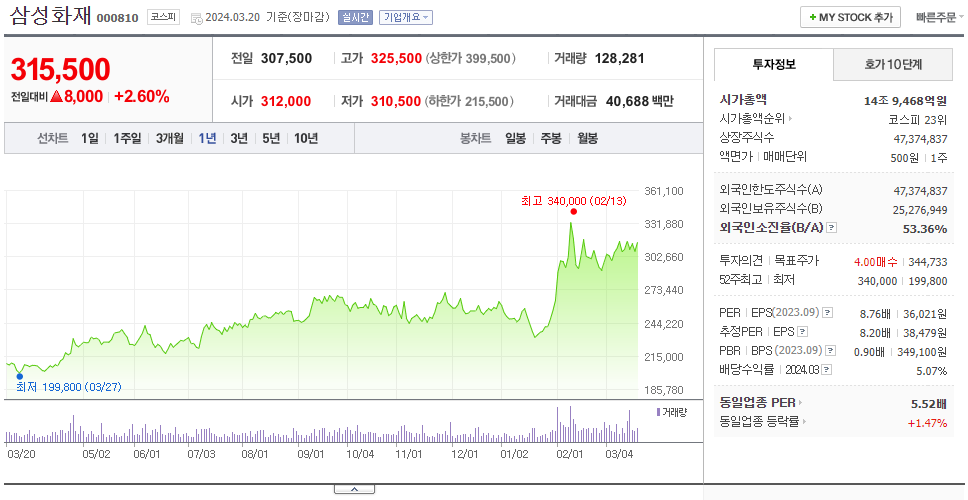 이 글에서는 삼성화재 주가 전망과 목표 주가, 기업 정보에 대해서 설명합니다. 주식 거래에서 중요한 부분은 현재 기업 가치보다는 미래의 기업 가치를 예측하고 먼저 행동하는 것입니다. 투자할 종목을 고르기 전에 현재 기업의 상황과 지표를 살펴보는 것이 중요합니다. 삼성화재 주식의 주요 현황과 투자 정보를 확인하시고 주식 투자에 도움이 되는 정보들을 모아 제공하니 투자에 도움을 받으실 수 있을 것입니다..