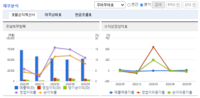 -2023년 9월 전년동기 대비 연결기준 매출액은 21.4% 감소, 영업이익은 45.8% 증가, 당기순이익은 49.1% 증가. 3분기 순이익은 전분기대비 28.9% 감소. 3분기 계절성 요인에 따라 자동차 및 일반보험 손익 감소로 보험손익이 감소함. 업계 절판 마케팅으로 월납 신계약이 증가하고, 고마진 상품으로 마진 또한 증가하며, 3Q 신계약 CSM이 1.2조 원으로 전분기대비 52.3% 증가함.