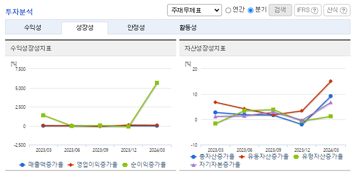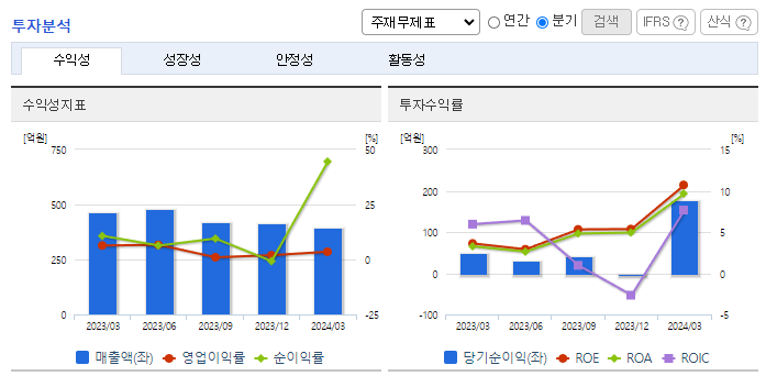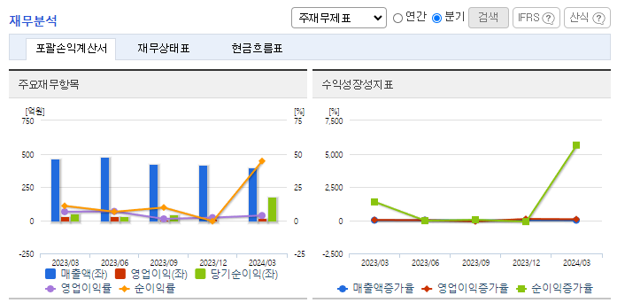 -2024년 3월 전년동기 대비 별도기준 매출액은 15% 감소, 영업이익은 52.9% 감소, 당기순이익은 253.2% 증가. 매출액, 영업이익은 저가 수입원단 국내 수입증가 영향으로 매출액, 영업이익은 큰 폭 감소하였으나 당기순이익은 전년 동기대비 큰 폭 증가함. 펄프는 국내 자원의 공급기반이 취약해 대부분 수입에 의존하고, 고지의 경우에는 수입품의 사용비율을 상당 부분 국내조달로 대체 노력 중.