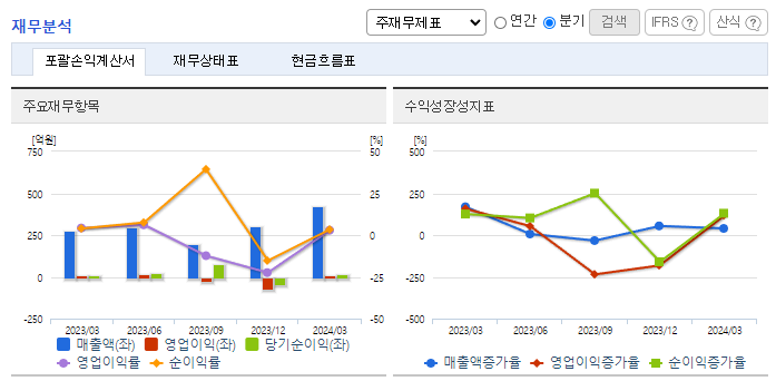 -2024년 3월 전년동기 대비 연결기준 매출액은 55.1% 증가, 영업이익은 9.6% 증가, 당기순이익은 59.6% 감소. 친환경 이동수단으로 빠르게 발전하고 있는 전기자전거 보급화를 위한 PHANTOM 브랜드와 고급화를 위한 BULLET 브랜드로 나누어 전략적으로 제품 개발을 하고 있음. 동사의 참 좋은 여행은 사회, 경제에서의 세계화로 해외여행과 관련된 제약사항이 개선되어 해외여행의 수요가 증가하고 있음.