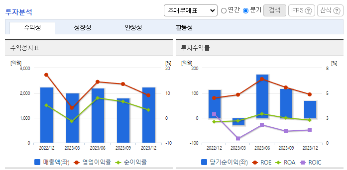 -2023년 9월 전년동기 대비 연결기준 매출액은 20.9% 증가, 영업이익은 100% 증가, 당기순이익은 42% 증가. 시멘트 가격상승으로 시멘트 매출이 2천억 가량 상승하면서 매출 확대. 원재료인 유연탄 가격과 전력비가 상승했으나 단가 인상과 가동률 제고로 인해 이익률 상승 시킴. 우크라이나 전쟁으로 인하여 원자재 가격 급등. 시멘트 가격이 치솟으며 이익률 개선. 공급자 우위 시장이므로 전방 업체에 비용 전가 가능.