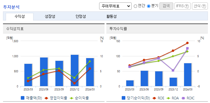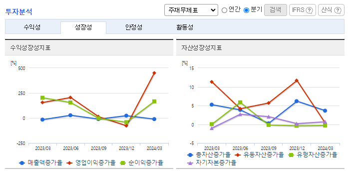 -2023년 12월 전년동기 대비 연결기준 매출액은 17.7% 증가, 영업이익은 135.7% 증가, 당기순이익은 155% 증가. 동사의 매출은 토목공사의 건설부문, 창업투자부문, 골재의 제조, 판매 및 부동산임대수익, 건설기계임대수익 등의 기타 부문으로 분류됨. 건설부문에서 활성화된 현장의 증가로 인한 이익증대, IPO 활성화에 따른 투자회사 및 투자조합의 이익증대, 판관비 소폭 증가 등으로 전년대비 영업이익이 크게 증가하였음.
