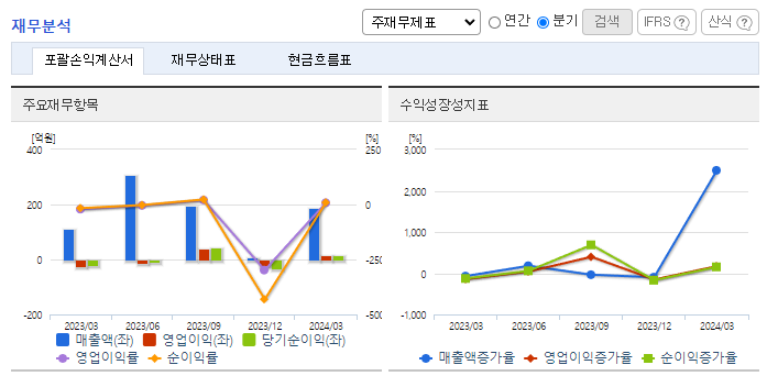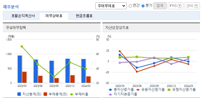 -2024년 3월 전년동기 대비 연결기준 매출액은 70% 증가, 영업이익 흑자전환, 당기순이익 흑자전환. 2023년 <두뇌공조, KBS>, <낭만닥터 김사부3, SBS> 등, 2024년 <원더풀월드, MBC> 드라마를 방송사에 제공하며 견고한 라인업을 기반으로 실적 유지가 기대됨. 동사는 향후 드라마IP 소유를 더욱 확대해 나갈 예정이며, 이를 활용해 다양한 부가 사업(One Source, Multi-Use) 진행 계획.