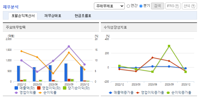 -2023년 9월 전년동기 대비 연결기준 매출액은 6.4% 증가, 영업이익은 3.5% 감소, 당기순이익은 59.9% 증가. 리튬이온 2차 전지는 중국, 인도 등 신흥 시장의 노트북PC, 휴대폰 수요의 견조한 성장세 등에 힘입어 지속적인 수요증가가 전망되고 있음. 삼성SDI에서 진행중인 PHEV/EV용 2차전지CAN의 개발업체로 선정되었으며, 중대형CAN용 2차전지 CAN 개발 완료하였으며 현재 양산 진행 중임.