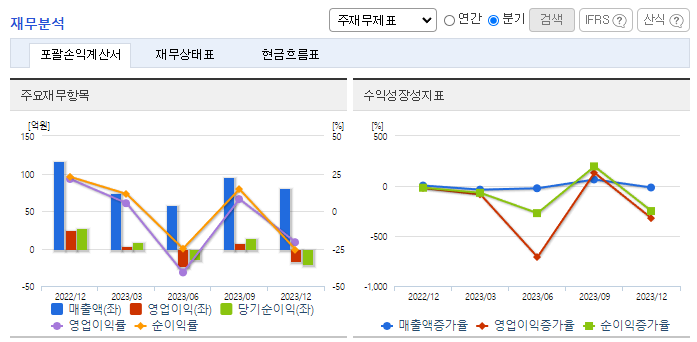 -2023년 12월 전년동기 대비 별도기준 매출액은 38.3% 감소, 영업이익 적자전환, 당기순이익 적자전환. 동사의 고객사는 국내외 프로브카드 제조사이며 최종 사용자는 반도체 제조사임. 반도체 제조사 기준으로 국내 공급은 82%이며 해외 공급은 18% 임. 글로벌 경기 침체 및 대외환경 불확실성 지속에 따른 소비심리 위축 우려로 고객사들의 긴축 재정 기조를 강화함에 따라 영업 적자.