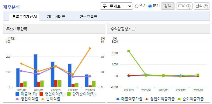 -2024년 3월 전년동기 대비 연결기준 매출액은 32.3% 감소, 영업이익은 54.9% 감소, 당기순이익은 11.5% 증가. 동사가 보유한 항만크레인 제어시스템 설계 전문 엔지니어들과 이로 갖춘 자동화 시스템이 시장점유율을 증진시키는데 기여함. 매출 대부분을 차지하는 항만 하역용 크레인 제어분야는 글로벌 공급사와 기술 경쟁에서 우위를 지킬 수 있을 정도로 자체 기술 발전을 해 왔으며, 계속하여 혁신하고 있음.