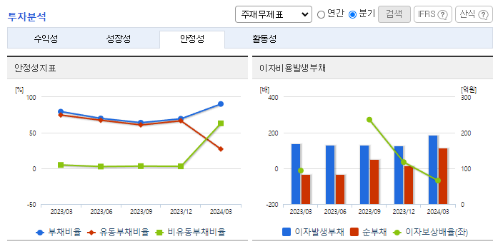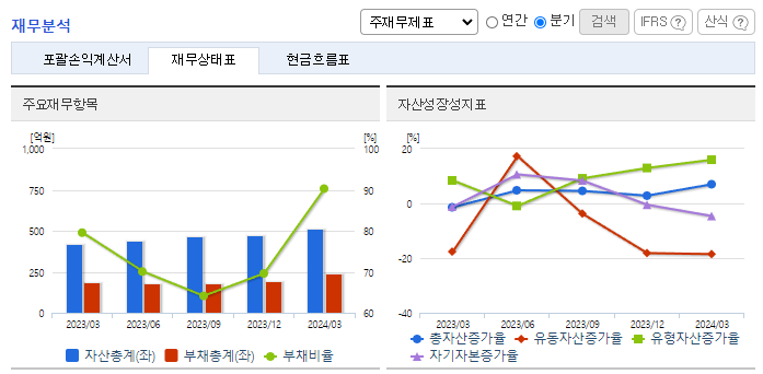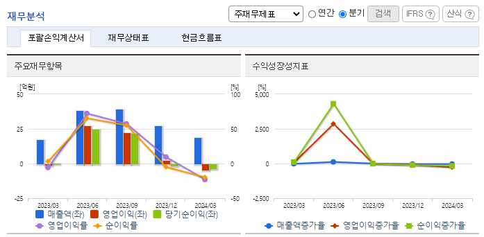 -2024년 3월 전년동기 대비 별도기준 매출액은 8% 증가, 영업손실은 334% 증가, 당기순이익 적자전환. PEG-의약품(단백질, 항체, 펩타이드 등)들의 PEGylation 기술을 이용한 약물전달의 효과와 안전성이 입증되고 있어 지속적인 수요가 증가하고 있음. 2024년에는 인천광역시 남동공단에 본사 및 신공장 완공이 예정되어 있어, 생산 캐파가 확대되어 향후 추가적인 매출 상승을 견인할 수 있을 것으로 예상됨.