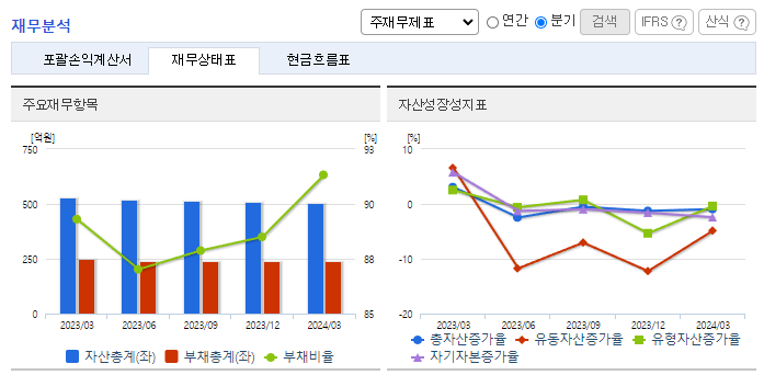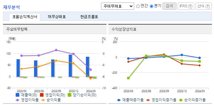-2024년 3월 전년동기 대비 별도기준 매출액은 13.7% 증가, 영업손실은 128.6% 증가, 당기순손실은 55.2% 증가. 주유소 매출이 15.6% 증가하며 전체 매출 증가를 견인하였지만 매출원가의 증가율이 높아 영업손실 폭이 크게 증가함. 2025년 중 단독건물 형태의 플래그십 매장을 개점 계획 중에 있으며 친근한 캐릭터를 이용한 IP사업으로 향후 관련사업 확대를 통해 매출 성장을 도모하고자 함.