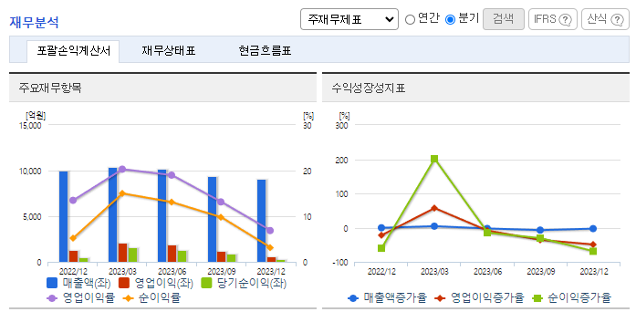 -2023년 9월 전년동기 대비 연결기준 매출액은 1.5% 증가, 영업이익은 22.2% 증가, 당기순이익은 16% 증가. 원재료의 차별화를 통한 원가절감을 통해 매출이 증가하였음에도 매출원가가 감소함에 따라 영업이익이 증가함. 영국에 자회사인 SeAH Wind Ltd. 를 설립하여 영국 해상풍력 기초구조물 제조산업 진출하였고, 영국 Teesside 지역에 24년 말 완공을 목표로 공장건설을 지속하고 있음.