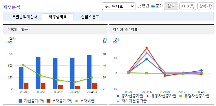 -2023년 12월 전년동기 대비 연결기준 매출액은 7.7% 증가, 영업이익은 34.8% 증가, 당기순이익은 83.8% 증가. 지난해 미국, 호주, 유럽, 중동, 아시아 등 다수의 헬스케어 전문기업과 글로벌 피트니스 체인과 지속적인 협업 등 통해 아큐닉 제품 수출이 늘었음. 유동자산이 증가한 주요 원인으로 당사는 23년 4월 7일 주주배정 유상증자를 실시, 현금 210억 원을 취득했기 때문임.