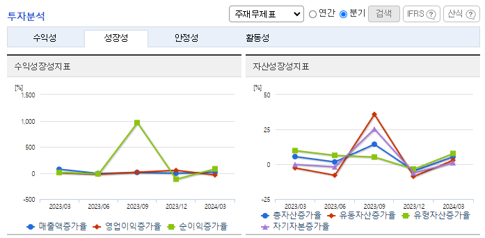 -2024년 3월 전년동기 대비 연결기준 매출액은 7.6% 증가, 영업손실은 26.5% 감소, 당기순이익 흑자전환. 전자소재 사업은 독자적인 OLED 재료, 퀀텀닷(QD) 소재 및 기능성 신소재를 지속적으로 개발하고 있으며, 향후 ICT 중심의 고부가 제품군 위주 포트폴리오 강화 예정임. 북미 시장 진출 진행 중이며, 캐나다 퀘벡 그헝비(Granby) 지역에 연 1.86만 톤 생산 가능한 부지를 확보하여 2024년 하반기 양산을 목표함
