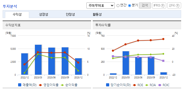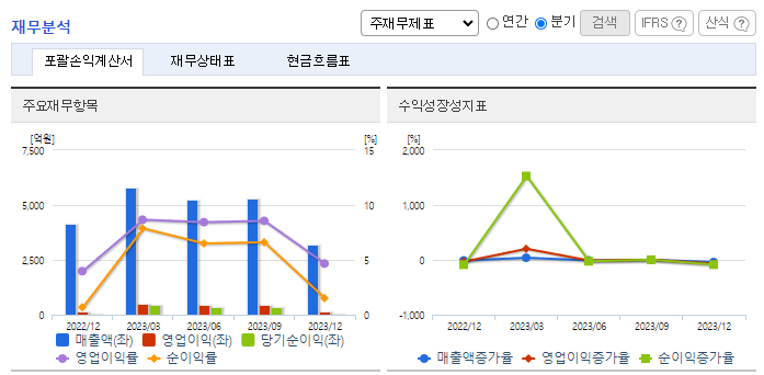 -2023년 9월 전년동기 대비 연결기준 매출액은 27.8% 증가, 영업이익은 136.6% 증가, 당기순이익은 166.3% 증가. 매출이 증가하면서 매출원가 23.1%, 판관비 15.8% 증가했지만 비용 증가폭을 상회하는 매출 성장이 나와 영업이익이 큰 폭으로 증가함. 동사 매출부문 중 파월모듈 매출이 6.43% 감소했지만, ESL 매출이 145.33% 증가하며 전체 외형 성장을 이끎.