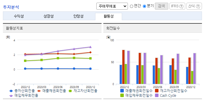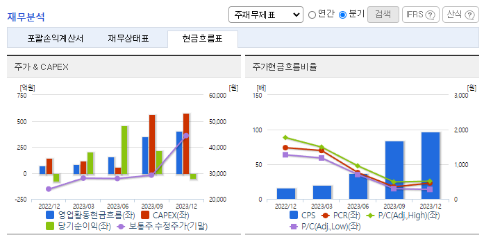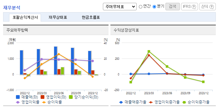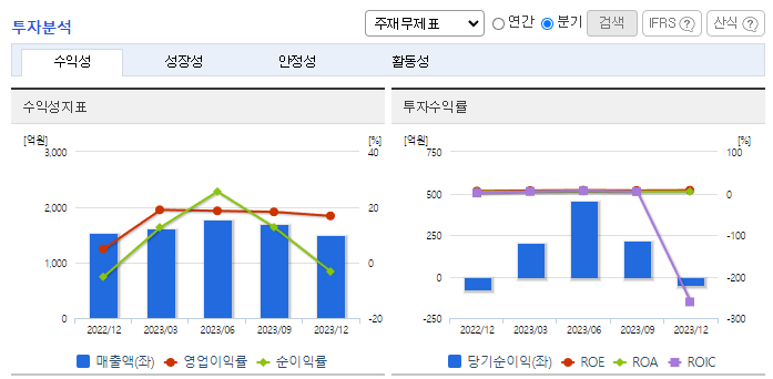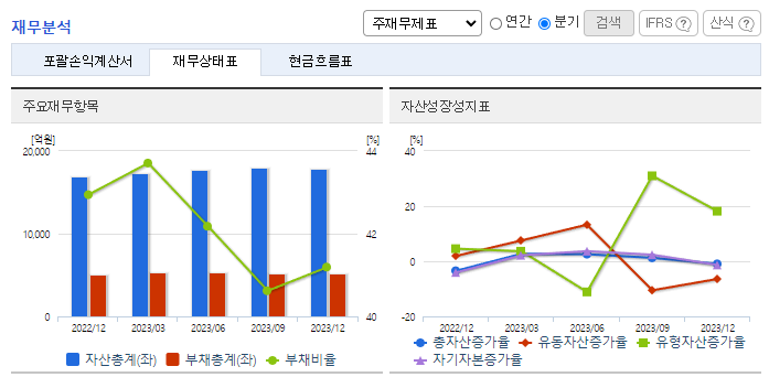 -2023년 9월 전년동기 대비 연결기준 매출액은 24.1% 증가, 영업이익은 45.1% 증가, 당기순이익은 32% 증가. 동사는 해외 2차 전지 소재 사업 자회사 관리 목적으로 솔브레인네트워크 주식회사 주식 834만 3,090주를 834억 원에 추가로 취득하기로 결정했으며, 이는 자기 자본 대비 7.06%에 해당함. 반도체, 디스플레이 등 주요 소재 라인 증설 및 성능 개선 등에 적극적으로 투자하며 미래 성장 동력을 확보하고 있음.
