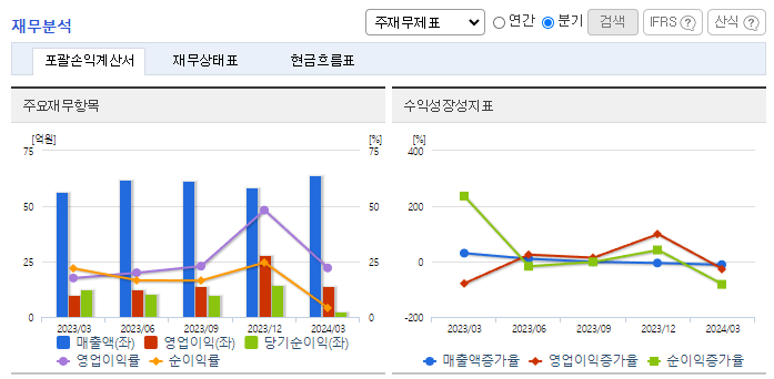 -2024년 3월 전년동기 대비 별도기준 매출액은 26.1% 증가, 영업이익은 9.8% 증가, 당기순이익은 79.4% 감소. 향후 ISP 3사 외에 MSO 고객 대상-공유단말접속서비스를 출시를 준비하고 있으며, MSO의 가입자는 약 218만 명으로 새로운 매출원으로써 기대가 됨. 보안사업의 중요성은 증대되고 있으며, 동사는 원천 기술을 기반으로 시장의 변화에 따라 신제품들을 개발하며 선제적으로 대응하고 있음.