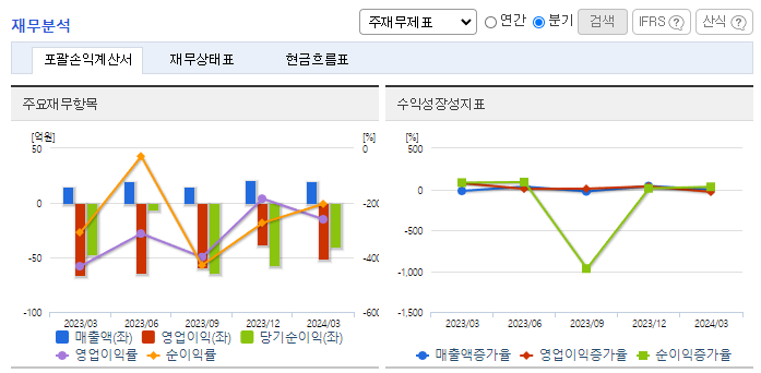 -2024년 3월 전년동기 대비 연결기준 매출액은 27.5% 증가, 영업손실은 23.3% 감소, 당기순손실은 16.7% 감소. 동사는 미국, 캐나다, 브라질 3개국에 의료기기 단일 심사 프로그램 MDSAP인증을 획득함. 동사는 국내 시장을 넘어 글로벌 알레르기 시장 진출에도 박차를 가하고 있음. 각 지역별 특화된 알레르기 패널을 기반으로 중동, 인도, 동남아시아 등 글로벌 시장을 확대를 계획 중.