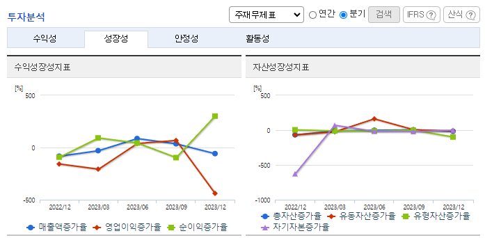 -2023년 9월 전년동기 대비 연결기준 매출액은 79.8% 감소, 영업이익 적자전환, 당기순손실은 89.9% 감소. 동사는 이노시스의 지분 245억 원 규모를 시지바이오에 양도하였으며, 이를 통해 재무구조 개선과 현금 유동성을 확보함. 제2회 차 무기명식 이권부 무보증 사모 전환사채의 전환청구 및 제2회차 신주인수권부사채 행사에 따라 리얼픽에서 에너지솔루션즈로 최대주주 변경됨.