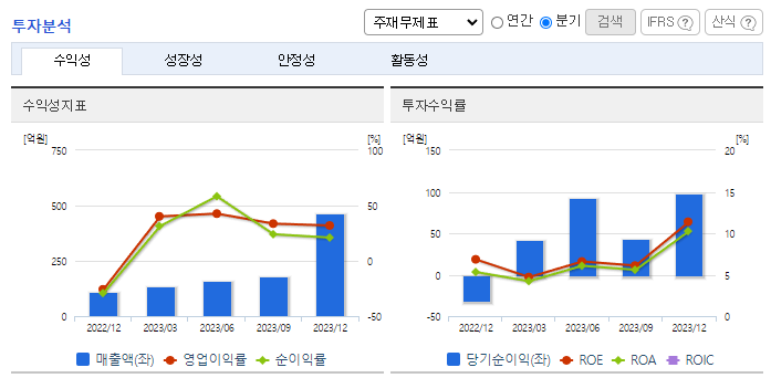 -2023년 12월 전년동기 대비 연결기준 매출액은 55.1% 증가, 영업이익은 220% 증가, 당기순이익은 74.1% 증가. 1999년 벤처캐피탈로 출발한 동사의 벤처조합/펀드 누적약정액이 2023년 말까지 1조 8000억 원에 달함. 2006년 역외 PEF설립으로 시작한 사모펀드의 누적약정액은 2023년 9월 말 8조 6000억 원을 기록하는 등 두 부문에서 모두 큰 성장세를 시현함.