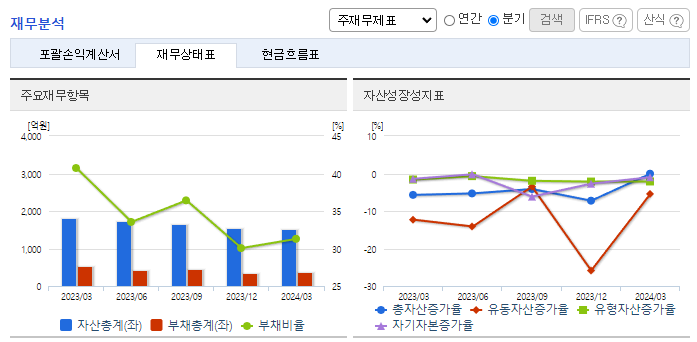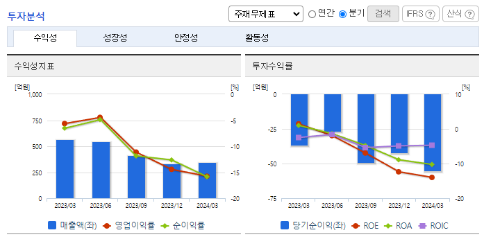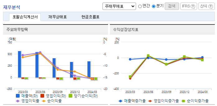 -2024년 3월 전년동기 대비 연결기준 매출액은 38.7% 감소, 영업손실은 71.6% 증가, 당기순손실은 49.2% 증가. 반도체 PKG의 SiP , Large Body , Fine pitch 등 New Biz 매출 창출을 위한 LAB기술을 지속적으로 투자 및 개발 중에 있음. Advanced SiP Module 제품의 수요 증가에 대응하기 위하여 고부가가치 프리미엄 반도체 패키지인 Recon플립칩 양산 Infra를 확보하였음.