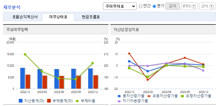 -2023년 12월 전년동기 대비 연결기준 매출액은 5.5% 증가, 영업이익은 28.4% 증가, 당기순이익 흑자전환. 독자개발한 대안육 '베러미트'를 활용하여 국내시장에서 상품을 개발 및 판매하고 있으며, 식물성 대안식 브랜드 '유아왓유잇(You are What you Eat)' 매장을 오픈하여 식물성 대안 식문화 확산에 기여함. Better Foods Inc. 를 통해 해외 시장을 개척, 대체육 제품군 유통을 확대해 나아가고 있음.