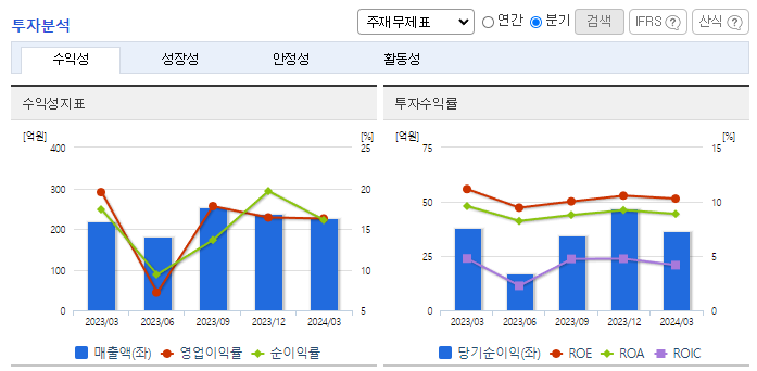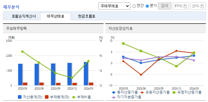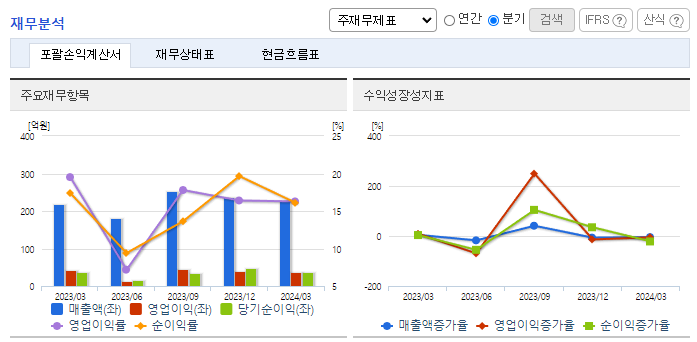 -2024년 3월 전년동기 대비 별도기준 매출액은 4.2% 증가, 영업이익은 13.1% 감소, 당기순이익은 3.6% 감소. 의약품판매 매출이 전년동기 대비 상승했으나 판매관리비 상승과 매출원가 상승으로 영업이익은 전년동기 대비 감소하였음. 타제약사를 고객으로 CMO사업을 병행하고 있기 때문에 안정적인 매출을 확보하고 있으며 플라스타/패취 자체 생산공정 및 기술력을 보유.