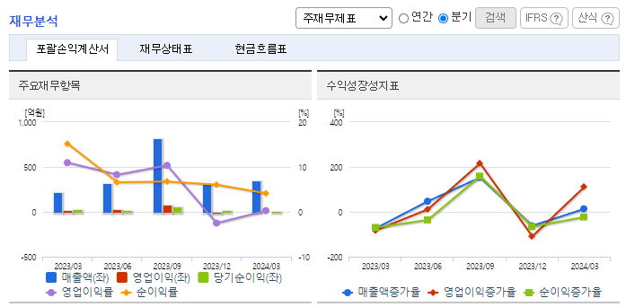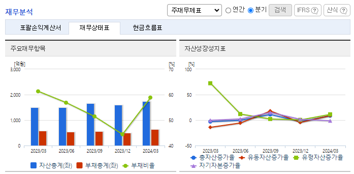 -2024년 3월 전년동기 대비 연결기준 매출액은 61.2% 증가, 영업이익은 96% 감소, 당기순이익은 56.1% 감소. 삼성전자와 500억 규모 반도체 제조장비 공급 계약을 체결함. 유리 기판 특허 원천기술 특허 출원함. 이로 인해 매출이 상승함. 신사업 연구개발 전용 제3공장 신축. Cu/AlN 방열기판 사업은 양산 공정을 개발. 라이닝 시트 시제품 생산 시작함.