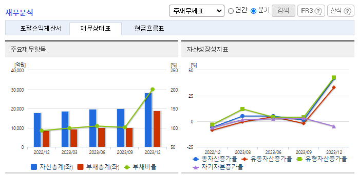 -2023년 9월 전년동기 대비 연결기준 매출액은 19.3% 증가, 영업이익은 121.2% 증가, 당기순이익은 613.6% 증가. 동사는 현재 해상풍력타워 발전기 건설에서 독보적인 경쟁력을 자랑하는 기업으로 꼽히며, ESG 열풍에 힘입어 매출액이 20% 가까이 증가했음. 2023년 7월 'Bladt Industries' 인수 결정을 통해 글로벌 해상풍력 하부구조물 시장에 진출함.