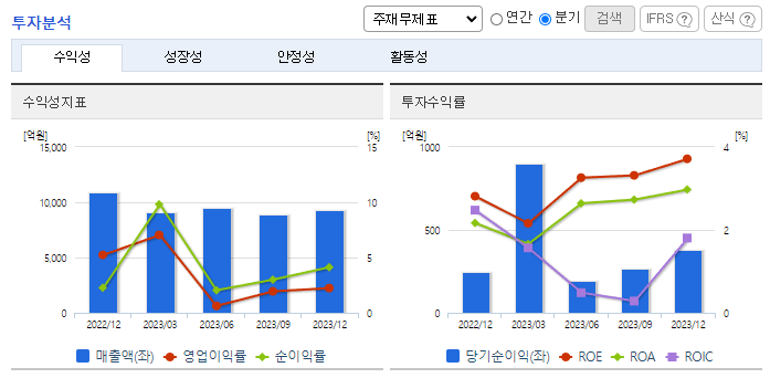 -2023년 9월 전년동기 대비 연결기준 매출액은 9.8% 감소, 영업이익은 44.4% 감소, 당기순이익은 23.9% 증가 면세, 중국 등의 매출이 급감하면서 전년도 대비 매출이 감소하였음. 화장품 부문 이익 감소와 데일리 뷰티 부문 적자 전환으로 인해 전체 국내 영업이익 감소함. 국내 DB(Daily Beauty) 사업은 제품 포트폴리오 재정비로 전체 매출은 하락하였으나, 브랜드 별 대표 핵심 제품은 경쟁력을 강화하며 매출이 성장함.