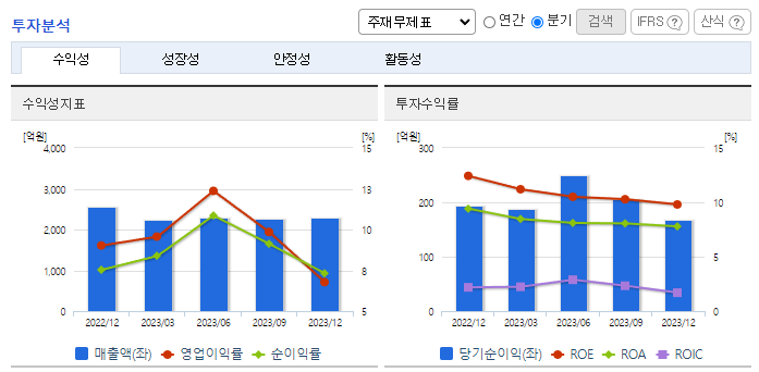-2023년 12월 전년동기 대비 연결기준 매출액은 11.2% 감소, 영업이익은 20% 감소, 당기순이익은 14.1% 감소. 지난해 한국 제지시장 전체 생산량과 출하량은 모두 전년 대비 감소 흐름을 이어감. 동사가 속한 골판지시장 역시 생산량과 출하량 모두 전년 대비 역성장 하는 모습을 보임. 골판지업체를 수직 계열화해 안정적인 영업망을 확보하고, 연료비 절감으로 지속적인 수익 창출에 힘쓰고 있음.