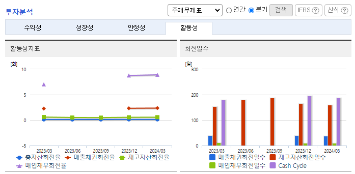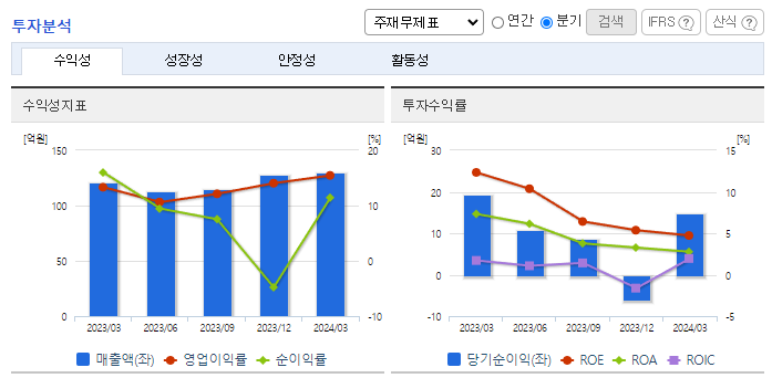 -2024년 3월 전년동기 대비 연결기준 매출액은 7% 증가, 영업이익은 24.3% 증가, 당기순이익은 16.3% 감소. 이형지 필름 매출이 7억 가량 하락 했으나, 무이형지 필름이 3억 가량 성장, 썬루프 원단이 10억 가량 성장 하면서 매출이 소폭 상승함. 글리터 시트, 무수염색사 등 새로운 제품에서의 매출 기대. 향후 베트남, 인도네시아 공장 가동률이 상향될 예정.