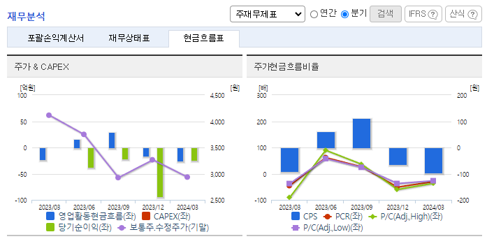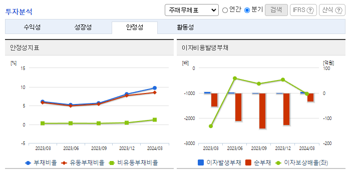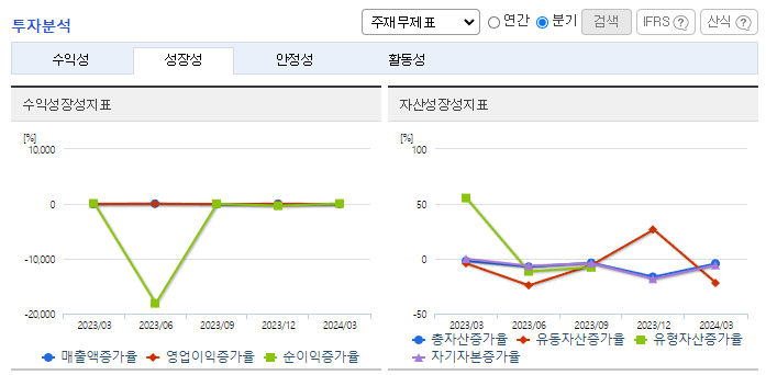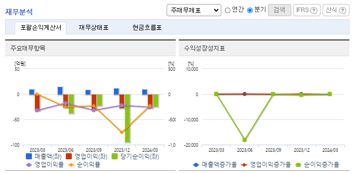 -2024년 3월 전년동기 대비 별도기준 매출액은 4.3% 증가, 영업손실은 16.3% 감소, 당기순손실은 11855% 증가. 수익성 개선을 위해 직접 상품을 매입하여 판매하여 중개업과 판매업을 동시에 운영하는 하이브리드형으로 사업 구조를 혁신하고 있음. 앤데믹 이후 베이비붐 세대의 소비자층이 전자상거래 시장에 대거 유입되고 온라인 쇼핑 시장의 지속적인 성장이 예측되며 반사이익이 기대됨.