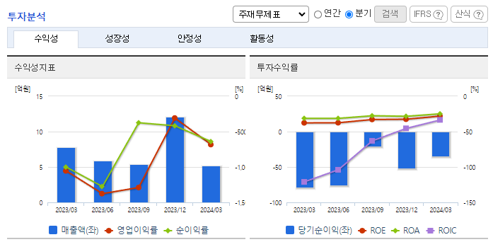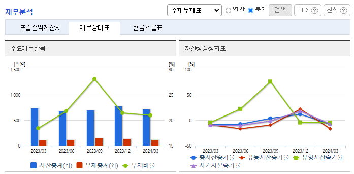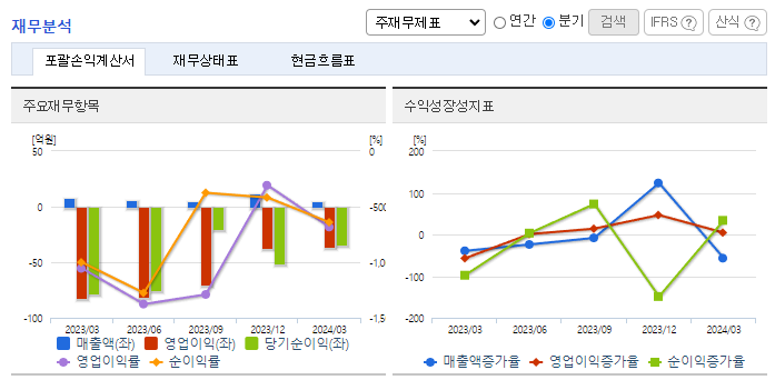 -2024년 3월 전년동기 대비 연결기준 매출액은 32.8% 감소, 영업손실은 56.5% 감소, 당기순손실은 59.4% 감소. 매출원가와 판관비가 13.7%, 55.8% 감소하면서 매출액이 큰 폭으로 줄어들었음에도 영업손실이 감소함. 특히 인건비 및 복리후생비가 94.5%가 축소됨. 자체 개발한 양이온성 리포좀을 기반으로 한 면역보조제 'CIA09'를 활용하여 대상포진 예방백신 'EG-HZ'를 개발 중임.