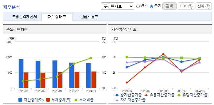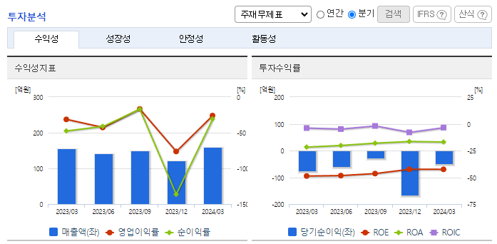-2024년 3월 전년동기 대비 연결기준 매출액은 1.9% 증가, 영업손실은 15.4% 감소, 당기순손실은 34.7% 감소. 매출액 소폭 증가하며 적자폭 일부 축소되었음. 주요 종속회사인 바이오로제트의 1분기 매출도 46억 원으로 부진함. 제약 CDMO 사업은 기존거래처 성장과 함께 대형 제약사를 신규 고객으로 확보함. 화장품 ODM 사업은 아모레퍼시픽 및 미국 코스트코에 신규 납품했으며, 마이크로니들 신제형을 출시 예정에 있음.