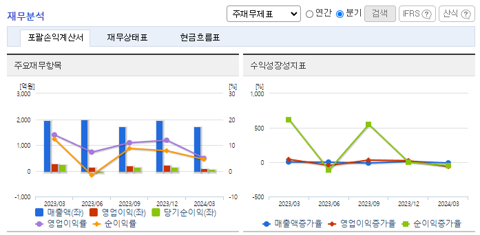 -2024년 3월 전년동기 대비 연결기준 매출액은 12.1% 감소, 영업이익은 69.5% 감소, 당기순이익은 68.3% 감소. 국내 경기침체의 영향을 받는 상황 속에서 미국시장의 매출이 감소함에 따라 부진한 외형을 기록하였으며, 비용부담 증가된 영향으로 수익성 크게 하락. 고강도, 경량 차체의 수요 증가로 획일화된 제조 방법을 벗어나 Hot Stamping, Aluminum Die Casting 등 다양한 재료 성형기술 도입 긍정적.