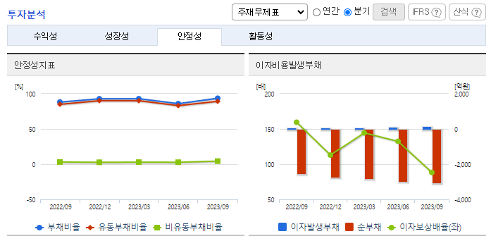-2023년 9월 전년동기 대비 연결기준 매출액은 5.2% 증가, 영업이익은 4.6% 감소, 당기순이익은 3.8% 증가. ARPPU는 상승했지만 PU가 1 Q23 이후 지속적으로 감소하고 있는 점은 우려요인. 광고 매출액은 CTTD 편입 영향 등으로 2분기 대비 늘어났지만 기대치는 하회함. 실적 리스크에도 불구하고, 동남아 시장 진출을 위한 새로운 플랫폼 숲(Soop)의 개발과 사업 준비가 계획대로 진행되는 것은 긍정적임.