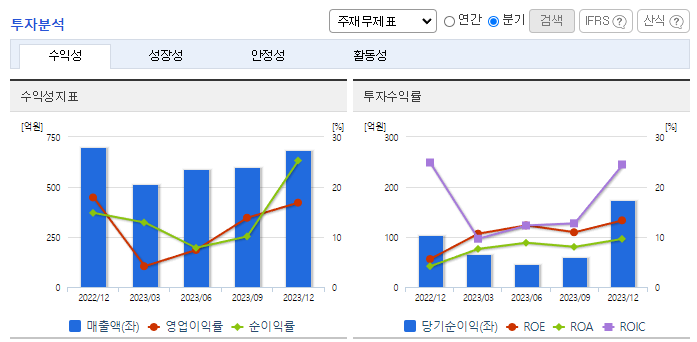 -2023년 9월 전년동기 대비 연결기준 매출액은 8% 증가, 영업이익은 2.8% 증가, 당기순이익은 304.9% 증가. 주력 사업 제품이며 비용 지출이 적은 보안 솔루션 부문에서의 매출 증가에 따라 지난 분기 대비 영업이익이 90% 상승함. 계열회사를 통해 일본, 중국의 보안사업을 시행하고 있으며, 일본의 경우 보안 솔루션, 중국에서는 생산라인 및 네트워크 보안 사업에 주력하고 있음.